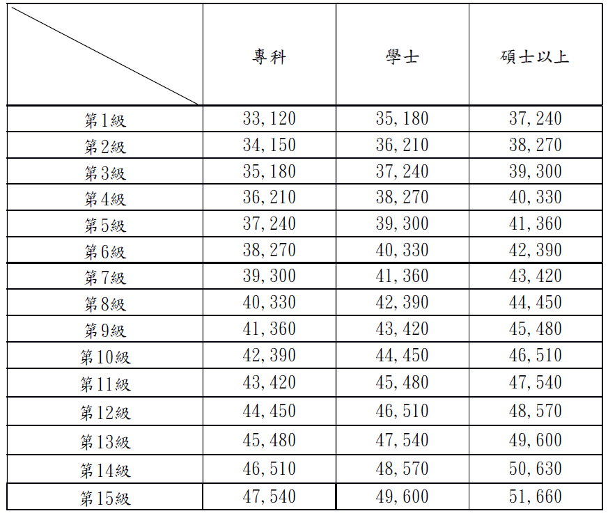 資料來源:公立幼兒園契約進用人員之進用考核及待遇辦法 |