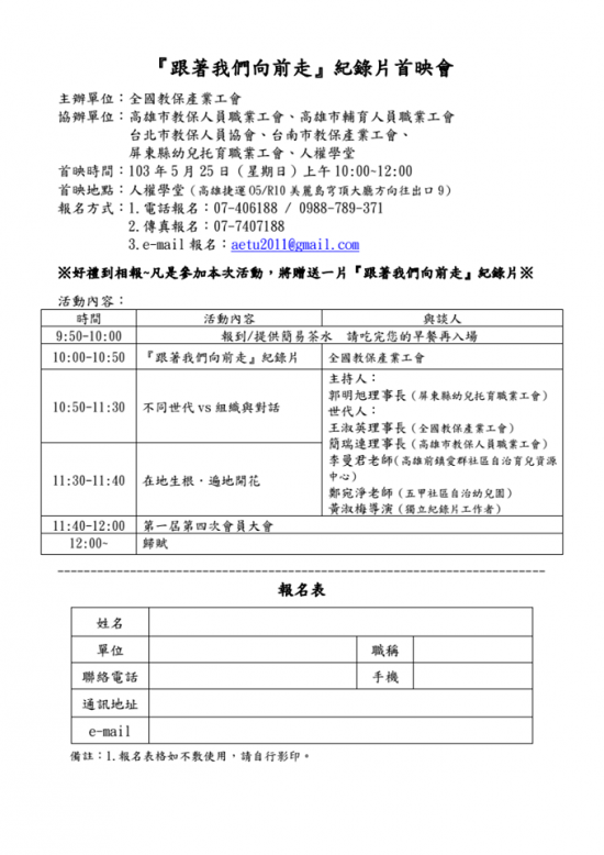 ※活動報名表附在夾帶檔中,歡迎大家一起來共襄盛舉※