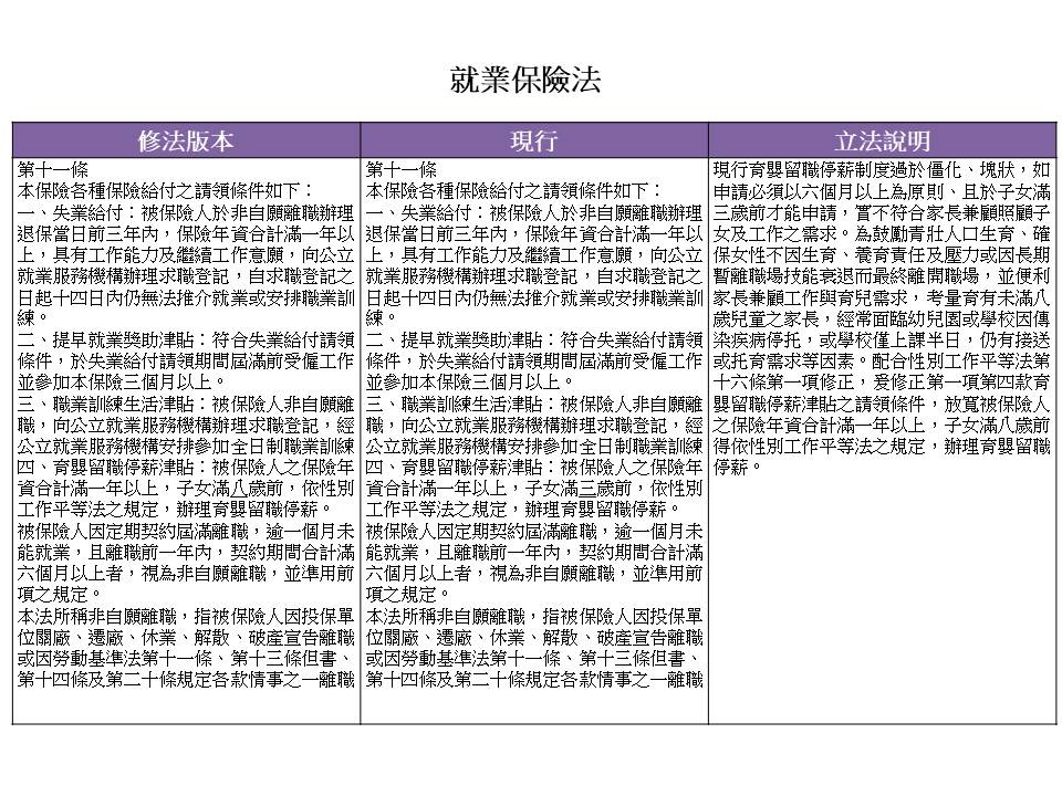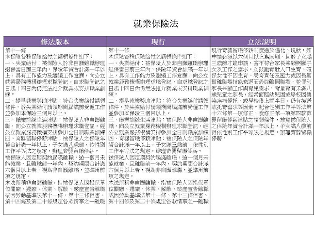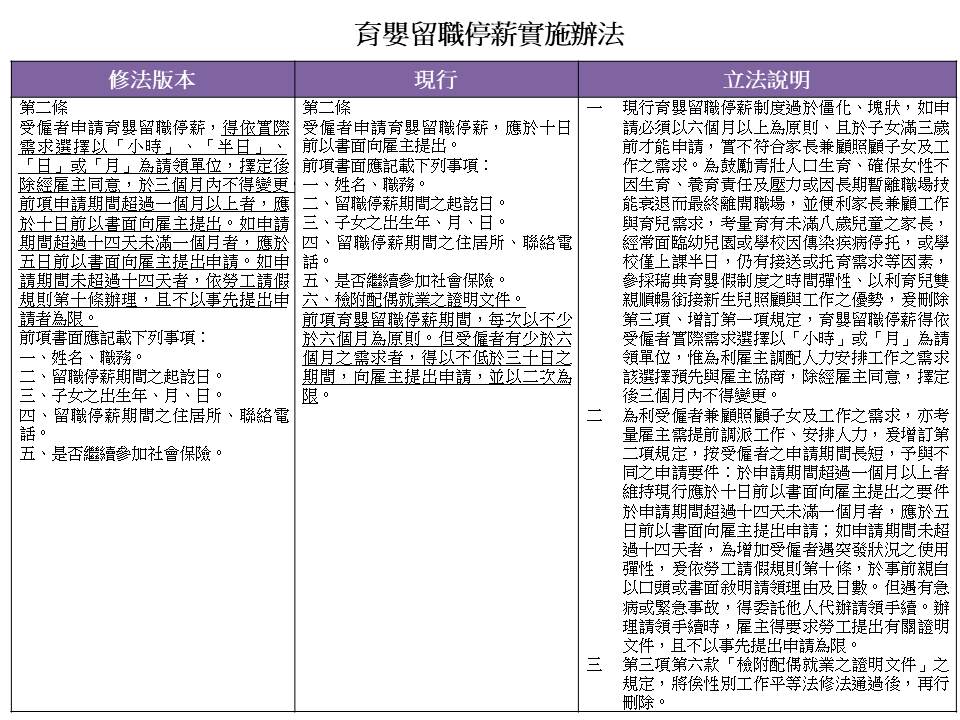 (增修就業保險法第十九之二條、育嬰留職停薪實施辦法第二條)