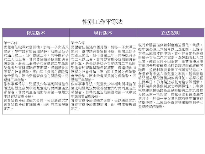 (修正性別工作平等法第十六條、就業保險法第十一條)
